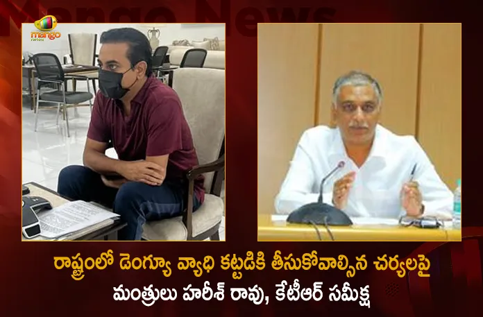 రాష్ట్రంలో డెంగ్యూ వ్యాధి కట్టడికి తీసుకోవాల్సిన చర్యలపై వైద్య, ఆరోగ్య శాఖ, పురపాలక శాఖ అధికారులతో మంత్రులు హరీశ్ రావు, కేటీఆర్ సోమవారం సమీక్ష నిర్వహించారు. ఈ సందర్భంగా వైద్యారోగ్య శాఖ మంత్రి హరీశ్ రావు మాట్లాడుతూ, “డెంగ్యూ కేసులు హైదరాబాద్ నగర పరిధిలోను, జిల్లాలోను పెరుగుతున్నాయి. ప్రతీ ఐదేళ్లకు ఒకసారి డెంగ్యూ కేసులు పెరుగుతుంటాయి. ఇది ఐదో సంవత్సరం కాబట్టి డెంగ్యూ కేసులు కొంచెం పెరుగుతున్న తీరు గమనిస్తున్నం. కాబట్టి వైద్య ఆరోగ్య పురపాలక, పంచాయతీ శాఖలు కలిసి పని చేస్తే మంచి ఫలితాలు వస్తాయి. జీహెచ్ఎంసీ పరిధిలో జులై నెలలో 542 డెంగ్యూ కేసులు ఉంటే ఆగస్టులో 1827 కేసులున్నాయి. డెంగ్యూను కారకమైనది మంచి నీటి దోమ. ఇవి పగటి పూటనే కుడతాయి. తొట్టిలో, కొబ్బరిచిప్పలు, పాత టైర్లు వంటి వాటిలో పెరుగుతాయి.. జీహెచ్ఎంసీలో 1600 మంది ఎటమాలజీ స్టాప్ ఉన్నారు. వీరంతా బాగా పని చేస్తున్నారు. వీరితో పాటు వైద్య ఆరోగ్య సిబ్బంది కలిసి ప్రతీ ఇంటికి వెళ్లి చైతన్యపర్చాలి. ప్రజా ప్రతినిధులు ప్రజలను భాగస్వామ్యం చేయించాలి. స్వాతంత్ర వజ్రోత్సవాల సందర్భంగా పది వేల బ్లడ్ యూనిట్లు సేకరించడం జరిగింది. ప్లెట్స్ లేట్స్ సపరేటర్ మిషన్లు అందుబాటులో ఉంచాము. ఎంత బ్లడ్ అవసరమైన ఉచితంగా ఇచ్చేందుకు వైద్యఆరోగ్య శాఖ తరపున ఉచితం అన్ని ఏర్పాట్లు చేశాం. ప్రతీ గవర్నమెంట్ ఆసుపత్రుల్లో వైద్యులు, మందులు, ఎక్విప్మెంట్ సిద్ధంగా ఉంది” అని అన్నారు.