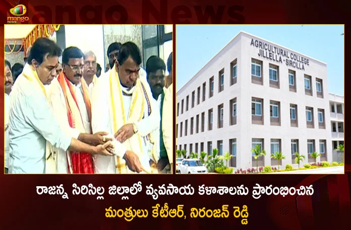 రాజన్న సిరిసిల్ల జిల్లాలో వ్యవసాయ కళాశాలను ప్రారంభించిన మంత్రులు కేటీఆర్‌, నిరంజన్‌ రెడ్డి