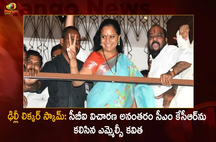 ఇక సాయంత్రం 6:30 గంటల సమయంలో విచారణ ముగిసిన అనంతరం ఎమ్మెల్సీ కవిత ఇంటి బయట పెద్ద ఎత్తున గుమికూడిన బీఆర్ఎస్ పార్టీ శ్రేణులు, అభిమానులను ఉద్దేశించి నవ్వుతూ అభివాదం చేశారు. ఆ తర్వాత నేరుగా ప్రగతిభవన్కు వెళ్లి సీఎం కేసీఆర్ను కలిశారు. ఇక ఆమె వెంట మంత్రి తలసాని శ్రీనివాస్ యాదవ్, ఎమ్మెల్యే చంటి క్రాంతి కిరణ్, పలువురు కార్పొరేషన్ల చైర్మన్లు ఉన్నారు. ఈ సందర్భంగా సీబీఐ విచారణ జరిగిన తీరుని గురించి కవిత ముఖ్యమంత్రికి వివరించినట్లు తెలుస్తోంది. అధికారులు అడిగిన ప్రశ్నలు, వాటికి తాను ఇచ్చిన సమాధానాలను ఆమె సీఎం కేసీఆర్కు విపులంగా చెప్పినట్లు సమాచారం. కాగా ఈ కేసులో సెక్షన్ సీఆర్పీసీ 91 కింద మరో నోటీసు అందించినట్లు తెలుస్తోంది. మద్యం కుంభకోణానికి సంబంధించి తన వద్ద ఏవైనా ఆధారాలుంటే తమకు అందజేయాలని కోరుతూ సీబీఐ అధికారులు ఈ నోటీసు జారీ చేసినట్లు సమాచారం.