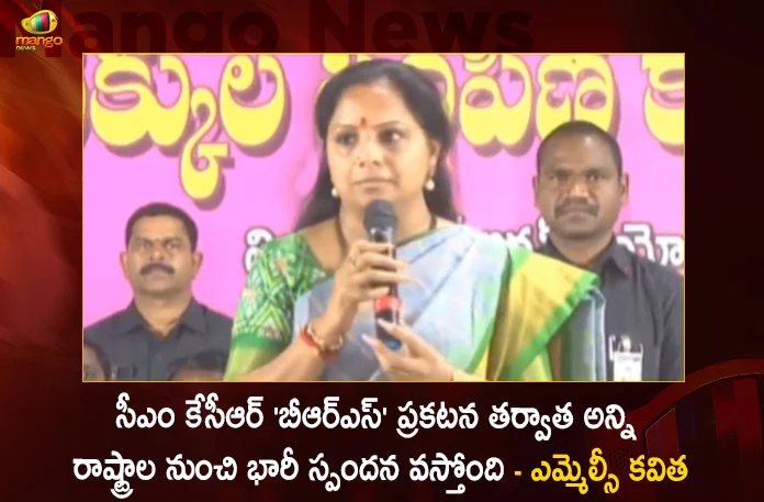 తెలంగాణ ముఖ్యమంత్రి కల్వకుంట్ల చంద్రశేఖర్ రావు ‘భారత రాష్ట్ర సమితి’ (బీఆర్ఎస్) పేరుతో నూతన జాతీయ పార్టీ ఏర్పాటు చేస్తున్నట్లు ప్రకటించిన తర్వాత దేశవ్యాప్తంగా ఒక చర్చ మొదలైందని, అన్ని రాష్ట్రాల నుంచి బీఆర్ఎస్కు భారీ స్పందన వస్తోందని తెలిపారు ఎమ్మెల్సీ కవిత. అయితే బీజేపీ నాయకుల మాటలు నమ్మి ప్రజలు ఆగం కావొద్దని సూచించారు. గురువారం ఆమె నిజామాబాద్ పట్టణంలోని రాజీవ్ గాంధీ ఆడిటోరియంలో లబ్ధిదారులకు కల్యాణ లక్ష్మీ, షాదీ ముబారక్ చెక్కులను పంపిణీ చేశారు. ఈ కార్యక్రమంలో ఎమ్మెల్సీ కవితతో పాటు ఎమ్మెల్యేలు గణేశ్ గుప్తా, జీవన్ రెడ్డి సహా పలువురు స్థానిక నేతలు, అధికారులు పాల్గొన్నారు.