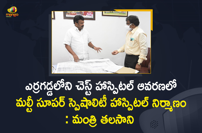 ఎర్రగడ్డలోని చెస్ట్ హాస్పిటల్ ఆవరణలో మల్టీ సూపర్ స్పెషాలిటీ హాస్పిటల్ నిర్మాణానికి ముఖ్యమంత్రి కె.చంద్రశేఖర్ రావు సూత్రప్రాయంగా అంగీకారం తెలిపారని రాష్ట్ర పశుసంవర్ధక, మత్స్య, పాడి పరిశ్రమల అభివృద్ధి, సినిమాటోగ్రఫీ శాఖలమంత్రి తలసాని శ్రీనివాస్ యాదవ్ తెలిపారు. త్వరలోనే హెల్త్ సెక్రెటరీ రిజ్వీ, డీఎంఈ, సంబంధిత అధికారులతో కలిసి చెస్ట్ హాస్పిటల్ ను సందర్శించిన అనంతరం సీఎంకు సమగ్ర నివేదికను అందజేయనున్నట్లు మంత్రి చెప్పారు. ఇటీవల చెస్ట్ హాస్పిటల్ లోని కోవిడ్ చికిత్స పొందుతున్న వారికి అందుతున్న వైద్య సేవలను తెలుసుకునేందుకు హోం మంత్రి మహమూద్ అలీతో కలిసి సందర్శించారు. అక్కడి పరిసరాలను పరిశీలించిన తానూ మల్టీ సూపర్ స్పెషాలిటీ హాస్పిటల్ నిర్మాణం ప్రాధాన్యతను సీఎంకు వివరించినట్లు మంత్రి తలసాని తెలిపారు. ఈ మేరకు చెస్ట్ హాస్పిటల్ సూపరింటెండెంట్ డాక్టర్ మహబూబ్ ఖాన్ తో మంగళవారం తన కార్యాలయంలో చెస్ట్ హాస్పిటల్ విస్తీర్ణం, నిర్మాణాలు తదితర అంశాలను చర్చించినట్లు మంత్రి శ్రీనివాస్ యాదవ్ చెప్పారు. ఈ హాస్పిటల్ నిర్మాణం పూర్తయితే కూకట్ పల్లి, శేరిలింగంపల్లి, పటాన్ చెరువు, జూబ్లీహిల్స్, సనత్ నగర్, ఖైరతాబాద్ నియోజకవర్గాల ప్రజలకు అతి చేరువలో మెరుగైన వైద్యసేవలు అందించవచ్చని అన్నారు.