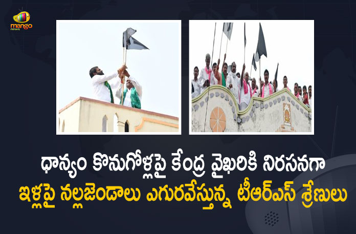 రాష్ట్రంలో వరి ధాన్యం కొనుగోళ్ళ అంశంపై కేంద్రంపై పోరులో భాగంగా టీఆర్ఎస్ పార్టీ వర్కింగ్ ప్రెసిడెంట్, మంత్రి కేటీఆర్ కార్యాచరణ ప్రకటించిన సంగతి తెలిసిందే. దీంతో టీఆర్ఎస్ పార్టీ శ్రేణులు వరుసగా నిరసన కార్యక్రమాలను కొనసాగిస్తున్నాయి. అందులో భాగంగా ఏప్రిల్ 8, శుక్రవారం నాడు రాష్ట్రంలోని అన్ని గ్రామ పంచాయతీల్లో నిరసన ప్రదర్శనలు నిర్వహిస్తున్నారు. కేంద్ర ప్రభుత్వ దిష్టిబొమ్మలు దగ్ధం చేయడంతో పాటుగా టీఆర్ఎస్ పార్టీ నాయకులు, కార్యకర్తలు, రైతుల తమ ఇండ్లపై నల్లా జెండా ఎగురవేసి నిరసన తెలుపుతున్నారు. ఈ నిరసన కార్యక్రమంలో తమ తమ ప్రాంతాల్లో రాష్ట్ర మంత్రులు, పార్టీ ఎమ్మెల్యేలు, ఎంపీలు, ఎమ్మెల్సీలు, కార్యకర్తలు పెద్దఎత్తున పాల్గొంటున్నారు. ధాన్యం కొనుగోళ్ల విషయంలో కేంద్ర ప్రభుత్వ వైఖరికి వ్యతిరేకంగా నిరసన వ్యక్తం చేస్తూ వారి ఇళ్లపై నల్లజెండాలను ఎగురవేస్తున్నారు. తెలంగాణలో యాసంగి వరి ధాన్యం మొత్తాన్ని కేంద్రమే కొనాలని డిమాండ్ చేస్తున్నారు.