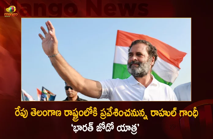 కాంగ్రెస్ పార్టీ అగ్రనేత రాహుల్ గాంధీ చేపడుతున్న ‘భారత్ జోడో యాత్ర’ రేపు (అక్టోబర్ 23, ఆదివారం) తెలంగాణ రాష్ట్రంలోకి ప్రవేశించనుంది. తెలంగాణలో మొత్తం 375 కిమీ మేర రాహుల్ గాంధీ పాదయాత్ర కొనసాగనుండగా, ఇందుకు సంబంధించిన రూట్ మ్యాప్ కూడా ఖరారైంది. ఆదివారం ఉదయం 6.30 గంటలకు కర్ణాటక నుంచి కృష్ణ రివర్ బ్రిడ్జి మీదుగా మక్తల్ నియోజకవర్గంలోకి రాహుల్ గాంధీ పాదయాత్ర ప్రవేశిస్తుంది. రేపు తెలంగాణలోకి రాహుల్ గాంధీకి ఘన స్వాగతం చెప్పడానికి, భారత్ జోడోయాత్రను విజయవంతం చేయడానికి కాంగ్రెస్ పార్టీ విస్తృత ఏర్పాట్లు చేస్తోంది. అలాగే కీలక కాంగ్రెస్ నేతలంతా భారత్ జోడోయాత్ర సన్నాహాల్లో మునిగిపోయారు.