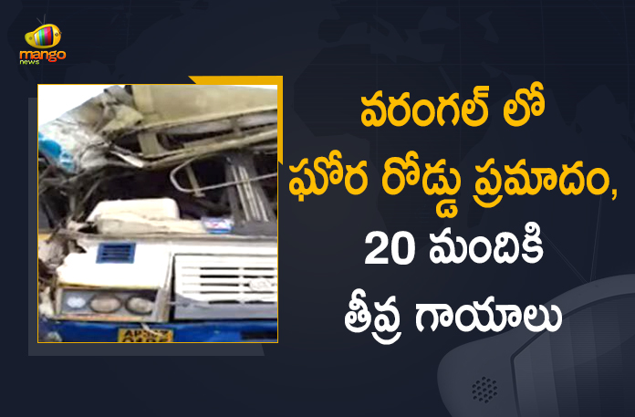 వరంగల్ రూరల్ జిల్లాలో శుక్రవారం నాడు ఘోర రోడ్డు ప్రమాదం జరిగింది. హనుమకొండ నుంచి భూపాలపల్లికి వెళ్తున్న ఆర్టీసీ బస్సును శాయంపేట మండలంలోని మందారిపేట శివారులో ఇసుక లారీ ఢీకొట్టింది. ప్రమాద సమయంలో బస్సులో ఉన్నవారిలో 20 మందికి తీవ్ర గాయాలవగా, మరో 10 మంది స్పల్పంగా గాయపడ్డట్టు తెలుస్తుంది. గాయపడిన వారిని సమీప ఆసుపత్రికి తరలించి చికిత్స అందిస్తున్నారు. ఈ ఘటనలో ఆర్టీసీ బస్సు ముందు భాగం పూర్తిగా నుజ్జునుజ్జు అయింది. సమాచారం అందిన వెంటనే పోలీసులు ఘటనాస్థలికి చేరుకొని పరిస్థితులను పరిశీలించారు. మరోవైపు లారీ అతివేగంగా రావడం వలనే ఈ ప్రమాదం చోటుచేసుకున్నట్టు పోలీసులు ప్రాథమికంగా భావిస్తున్నారు.