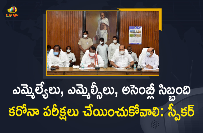 ఎమ్మెల్యేలు, ఎమ్మెల్సీలు, అసెంబ్లీ సిబ్బంది కరోనా పరీక్షలు చేయించుకోవాలి: స్పీకర్