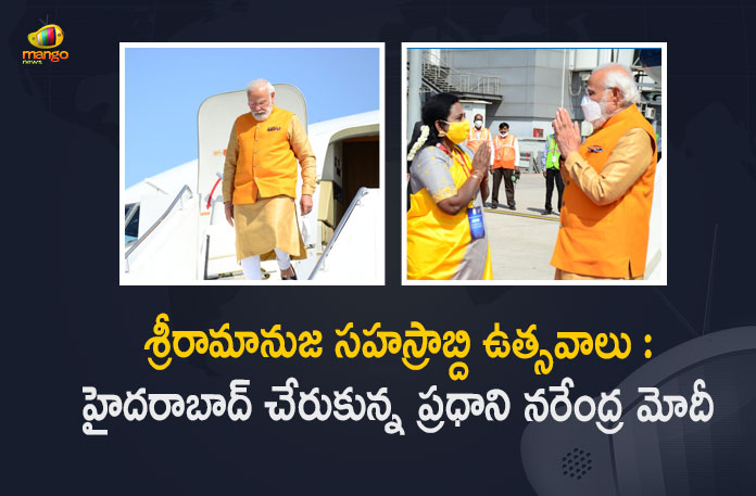 ప్రధానమంత్రి నరేంద్ర మోదీ హైదరాబాద్ చేరుకున్నారు. ఈ పర్యటనలో భాగంగా ముచ్చింతల్ లోని శ్రీరామనగరం ఆశ్రమంలో జరుగుతున్న శ్రీ రామానుజాచార్యుల సహస్రాబ్ది వేడుకల్లో పాల్గొని ‘సమతామూర్తి’ విగ్రహాన్ని ప్రధాని ఆవిష్కరించనున్నారు. ముందుగా శనివారం మధ్యాహ్నం శంషాబాద్ విమానాశ్రయానికి చేరుకున్న ప్రధాని మోదీకి తెలంగాణ రాష్ట్ర గవర్నర్ తమిళిసై సౌందరరాజన్, కేంద్ర మంత్రి కిషన్ రెడ్డి, రాష్ట్ర మంత్రి తలసాని శ్రీనివాస్ యాదవ్, ప్రభుత్వ ప్రధాన కార్యదర్శి సీఎస్ సోమేశ్ కుమార్, డీజీపీ మహేందర్ రెడ్డి స్వాగతం పలికారు. అనంతరం శంషాబాద్ నుంచి ప్రత్యేక హెలికాప్టర్లో ప్రధాని మోదీ సంగారెడ్డి జిల్లా పటాన్చెరులోని ఇక్రిశాట్ కు వెళ్లారు. ఇక్రిశాట్ స్వర్ణోత్సవ వేడుకల్లో పాల్గొని కొత్త లోగోను ఆవిష్కరించనున్నారు.