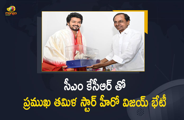 ప్రముఖ తమిళ స్టార్ హీరో విజయ్ బుధవారం ప్రగతిభవన్ లో ముఖ్యమంత్రి కె.చంద్రశేఖర్ రావును మర్యాదపూర్వకంగా కలిశారు. ఈ సందర్భంగా హీరో విజయ్ ను సీఎం కేసీఆర్ సాదరంగా ఆహ్వానించి శాలువాతో సత్కరించి, జ్ఞాపికను అందజేశారు. అనంతరం సీఎం కేసీఆర్, హీరో విజయ్ మధ్య కొద్దిసేపు పలు అంశాలపై చర్చ జరిగినట్లు తెలుస్తుంది. సీఎంను కలిసినవారిలో విజయ్ తో పాటుగా ప్రముఖ టాలీవుడ్ డైరెక్టర్ వంశీ పైడిపల్లి కూడా ఉన్నారు. వీరు ముందుగా టీఆర్ఎస్ నేత, రాజ్యసభ ఎంపీ సంతోష్ కుమార్ ను కలుసుకున్నారు. అనంతరం ఎంపీ సంతోష్ కుమార్తో కలిసి సీఎం కేసీఆర్ను కలిశారు.