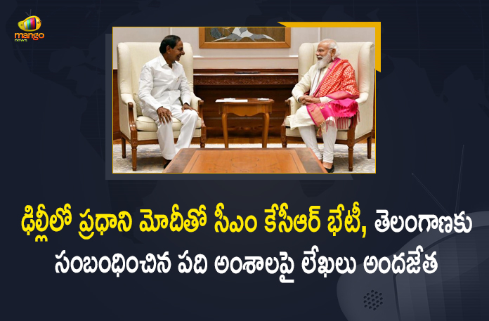 తెలంగాణ రాష్ట్ర ముఖ్యమంత్రి కె.చంద్రశేఖర్ రావు ఢిల్లీ పర్యటనలో ఉన్న విషయం తెలిసిందే. ఈ నేపథ్యంలో శుక్రవారం న్యూఢిల్లీలోని ప్రధాని నివాసంలో ప్రధాని నరేంద్ర మోదీతో సీఎం కేసీఆర్ సమావేశమయ్యారు. ఈ సందర్భంగా 50 నిమిషాల పాటు సాగిన చర్చలో రాష్ట్రానికి సంబంధించి పలు అంశాలను పరిష్కరించాల్సిందిగా ప్రధాని మోదీని సీఎం కేసీఆర్ కోరారు. తెలంగాణకు సంబంధించిన పది అంశాలపై ప్రధానికి లేఖలు అందజేశారు. అలాగే ఈ భేటీ సందర్భంగా ఢిల్లీలో రాష్ట్ర అధికార భవన్ ‘తెలంగాణ భవన్’ నిర్మించుకునేందుకు స్థలం కేటాయించాలని, యాదాద్రి పుణ్యక్షేత్ర ప్రారంభోత్సవానికి రావాలని ప్రధానిని సీఎం కోరారు. సీఎం అభ్యర్థనలకు ప్రధాని సానుకూలంగా స్పందించి స్పష్టమైన హామీ ఇచ్చారు.