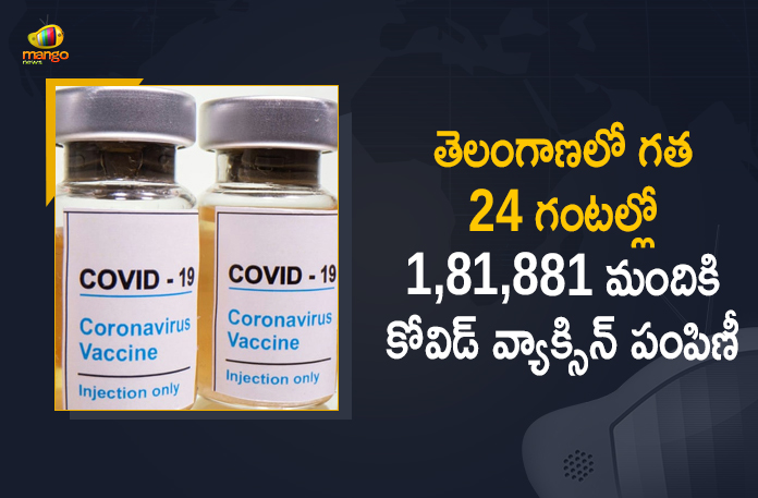 తెలంగాణ రాష్ట్రంలో కోవిడ్ వ్యాక్సినేషన్ కార్యక్రమం విజయవంతంగా కొనసాగుతుంది. ఈ నేపథ్యంలో ఆగస్టు 12, గురువారం నాడు 1,19,290 మందికి మొదటి డోస్, 62,591 మందికి రెండో డోస్ కలిపి మొత్తం 1,81,881 మందికి కరోనా వ్యాక్సిన్ వేసినట్లు పేర్కొన్నారు. అలాగే గురువారం రాత్రి 10 గంటల వరకు రాష్ట్రంలో లబ్ధిదారులకు అందించిన కరోనా వ్యాక్సిన్ డోసుల సంఖ్య 1,59,02,597 చేరినట్టు రాష్ట్ర వైద్య ఆరోగ్యశాఖ ప్రకటించింది. ఇందులో 1,18,21,275 మంది లబ్ధిదారులకు మొదటి డోసు, 40,81,322 మంది లబ్ధిదారులకు రెండు డోసుల కరోనా వ్యాక్సిన్ వేసినట్టు పేర్కొన్నారు. ఇక 18-44 ఏళ్ల వయసు కేటగిరిలో ఇప్పటికి 56,54,304 మంది మొదటి డోసు, 7,99,727 మంది రెండో డోసు వ్యాక్సిన్ తీసుకున్నారు.