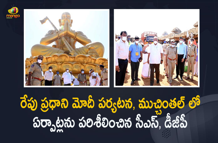 ప్రపంచంలొనే రెండవ అతిపెద్ద విగ్రహం, 216 అడుగుల ఎత్తైన శ్రీ రామానుజుల విగ్రహ స్థలాన్ని పరిశీలించారు. ప్రధాని ఆవిష్కరించనున్న సమతా మూర్తి విగ్రహ పరిసర ప్రాంతాలు, ప్రధాని వచ్చే మార్గాలను పరిశీలించారు. ప్రధాని తోపాటు పాల్గొనే వారి జాబితాను కచ్చితంగా ఎస్.పీ.జి అనుమతించాల్సి ఉంటుందని నిర్వాహకులకు స్పష్టం చేశారు. ఇక్కడే ఏర్పాటుచేసిన లేజర్ షో ప్రాంతం లో బందోబస్తును సంబంధిత అధికారులతో సమీక్షించారు. అనంతరం ప్రధాని మోదీ దిగనున్న శంషాబాద్ ఎయిర్ పోర్ట్ కు వెళ్లి అక్కడ ఏర్పాట్లను కూడా సీఎస్, డీజీపీ పరిశీలించారు.