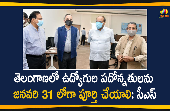 తెలంగాణ రాష్ట్రంలో ప్రభుత్వ ఉద్యోగులకు పదోన్నతులు ఇవ్వడం, వేతనాలు, ఉద్యోగ విరమణ వయస్సు పెంపు, అన్నిశాఖల్లో ఉద్యోగాల భర్తీ ప్రక్రియ వంటి అంశాలను ఫిబ్రవరిలోగా సంపూర్ణంగా పరిష్కరించనున్నట్లు ముఖ్యమంత్రి కె.చంద్రశేఖర్ రావు ఇటీవల వెల్లడించిన సంగతి తెలిసిందే. ఈ నేపథ్యంలో సీఎం కేసీఆర్ ఆదేశాల మేరకు రాష్ట్రంలో సెక్రటెరియట్, హెడ్ అఫ్ ది డిపార్ట్మెంట్ (హెఛ్ఓడీఎస్) మరియు జిల్లా స్ధాయిలలో ఉద్యోగుల పదోన్నతులను ఎటువంటి జాప్యం లేకుండా జనవరి 31 లోగా పూర్తి చేయాలని రాష్ట్ర ప్రభుత్వ ప్రధాన కార్యదర్శి సోమేశ్ కుమార్ అన్ని శాఖల కార్యదర్శులను, హెఛ్ఓడీల ఉన్నతాధికారులను ఆదేశించారు.
