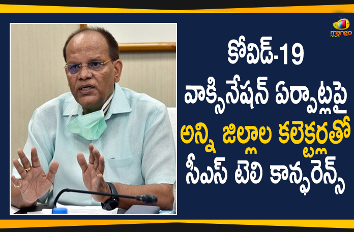 ముఖ్యమంత్రి కె.చంద్రశేఖర్ రావు ఆదేశాల మేరకు మంగళవారం నాడు అన్ని జిల్లాల కలెక్టర్లతో రాష్ట్ర ప్రభుత్వ ప్రధాన కార్యదర్శి సోమేశ్ కుమార్ టెలి కాన్ఫరెన్స్ నిర్వహించారు. కోవిడ్-19 వాక్సినేషన్ ప్రక్రియను ప్రారంభించేందుకు చేపట్టాల్సిన వ్యవస్థాపరమైన ఏర్పాట్లను కలెక్టర్లతో సమీక్షించారు. మొదటి దశలో ప్రభుత్వ, ప్రైవేట్ రంగాల్లో పనిజేస్తున్నహెల్త్ కేర్ వర్కర్స్ అందరికీ కోవిడ్ -19 వాక్సినేషన్ ఇవ్వాల్సిన ప్రాధాన్యతపై కలెక్టర్లను సెన్సిటైజ్ చేశారు. వాక్సినేషన్ ప్రారంభించే కేంద్రాలలో నిర్దేశించిన ఆపరేషనల్ గైడ్ లైన్స్ ప్రకారం వసతులు కల్పించాలని సూచించారు. అదేవిధంగా ఎక్కడైనా ప్రతికూల ప్రభావం కనపడితే వెంటనే తగు చర్యలు చేపట్టడానికి అవసరమైన అన్ని ముందు జాగ్రత్త చర్యలు తీసుకోవాలని కలెక్టర్లకు స్పష్టం చేశారు.