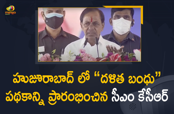 తెలంగాణ రాష్ట్రప్రభుత్వం “దళిత బంధు” పథకాన్ని ప్రతిష్టాత్మకంగా చేపట్టాలని నిర్ణయం తీసుకున్న సంగతి తెలిసిందే. ఈ నేపథ్యంలో దళిత బంధు పథకాన్ని పైలట్ ప్రాజెక్టుగా హుజూరాబాద్ నియోజకవర్గం నుంచి నేడు(ఆగస్టు 16, సోమవారం) ముఖ్యమంత్రి కె.చంద్రశేఖర్ రావు ప్రారంభించారు. హుజూరాబాద్ నియోజకవర్గం జమ్మికుంట పట్టణ శివారులోని శాలపల్లిలో సీఎం కేసీఆర్ అధ్యక్షతన దళిత బంధు ప్రారంభోత్సవ బహిరంగ సభ జరుగుతుంది. ముందుగా శాలపల్లి సభలో డాక్టర్ బీఆర్ అంబేద్కర్, బాబు జగ్జీవన్ రామ్ చిత్ర పటాలకు సీఎం కేసీఆర్ నివాళులర్పించారు. ఈ వేదికపై దళిత బంధు కింద 15 మంది లబ్ధిదారులకు ఒక్కొక్కరికి రూ.10 లక్షల చొప్పున సీఎం కేసీఆర్ చెక్కులను అందించారు. ఈ సభకు రాష్ట్ర మంత్రులు, పలువురు ఎమ్మెల్యేలు, ఎమ్మెల్సీలు హాజరయ్యారు.