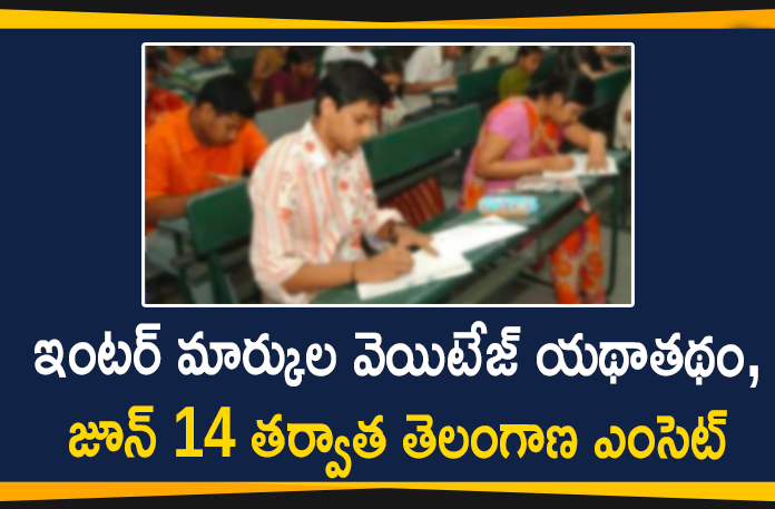 ఇంటర్ మార్కుల వెయిటేజ్‌ యథాతథం, జూన్‌ 14 తర్వాత తెలంగాణ ఎంసెట్‌
