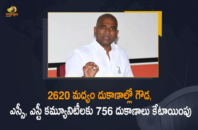 2620 మద్యం దుకాణాల్లో గౌడ, ఎస్సీ, ఎస్టీ కమ్యూనిటీలకు 756 దుకాణాలు కేటాయింపు