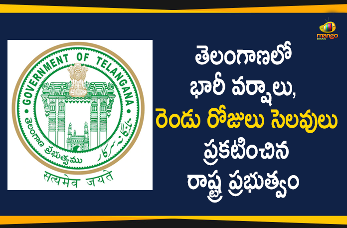 తెలంగాణ రాష్ట్రంలో భారీ వర్షాలు కురుస్తున్నాయి. ముఖ్యంగా హైదరాబాద్ నగరంలో రెండు రోజులనుంచి కురుస్తున్న అతిభారీ వర్షాలతో జన జీవనం స్తంభించిపోయింది. దీంతో భారీ వర్షాల కారణంగా తెలంగాణ రాష్ట్రంలో రెండు రోజుల పాటు(ఈరోజు, రేపు) సెలవులు ఇస్తున్నట్టుగా రాష్ట్ర ప్రభుత్వం ప్రకటించింది. వర్షాల ప్రభావం అధికంగా ఉన్న జీహెచ్ఎంసీ పరిధిలోని అన్ని ప్రభుత్వ, ప్రైవేటు కార్యాలయాలకు రెండ్రోజులు సెలవు ఇస్తున్నట్టు ప్రకటించారు.