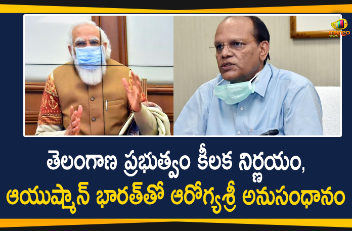 తెలంగాణ రాష్ట్ర ప్రభుత్వం మరో కీలక నిర్ణయం తీసుకుంది. కేంద్ర ప్రభుత్వం అమలు చేస్తున్న ఆయుష్మాన్ భారత్‌ పథకంతో ఆరోగ్యశ్రీ పథకాన్ని అనుసంధానించాలని నిర్ణయించింది. ముఖ్యమంత్రి కె.చంద్రశేఖర్ రావు భారత ప్రభుత్వ ఆయుష్మాన్ భారత్ పథకంతో తెలంగాణ రాష్ట్ర ప్రభుత్వ ఆరోగ్యశ్రీ పథకాన్ని అనుసంధానం చేయడానికి నిర్ణయం తీసుకున్నారని ప్రభుత్వ ప్రధాన కార్యదర్శి సోమేశ్ కుమార్ ప్రధానమంత్రి నరేంద్ర మోదీకి తెలియజేశారు. బుధవారం నాడు ప్రధాని మోదీ అన్ని రాష్ట్రాల ప్రధాన కార్యదర్శులతో వీడియో కాన్ఫరెన్స్ నిర్వహించి ఆయుష్మాన్ భారత్, ప్రధాన మంత్రి జన ఆరోగ్య యోజన, జల్ జీవన్ మిషన్ పథకాల మౌలిక సదుపాయాల పురోగతిని సమీక్షించారు.