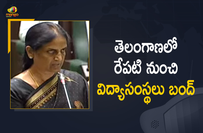 తాత్కాలికంగా విద్యాసంస్థల మూసివేతపై మంత్రి సబితా ఇంద్రారెడ్డి పూర్తి ప్రకటన: