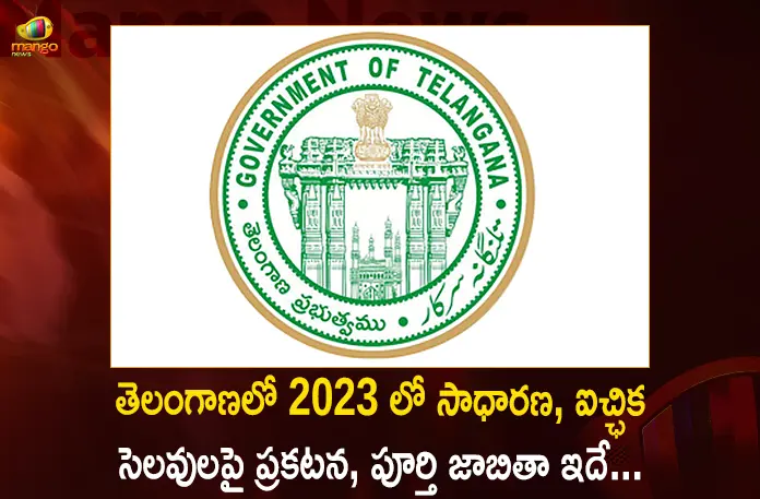 తెలంగాణ రాష్ట్ర ప్రభుత్వం 2023 సంవత్సరానికి సంబంధించిన ప్రభుత్వ సెలవులపై నేడు (నవంబర్ 16, బుధవారం) నోటిఫికేషన్ జారీ చేసింది. సాధారణ, ఐచ్ఛిక(ఆప్షనల్), వేతనంతో కూడిన సెలవులను ప్రకటిస్తూ రాష్ట్ర ప్రభుత్వ ప్రధాన కార్యదర్శి సోమేశ్ కుమార్ ఉత్తర్వులు జారీ చేశారు. 2023 లో మొత్తం 28 రోజుల సాధారణ సెలవులు, మరో 24 రోజులను ఐచ్ఛిక సెలవులుగా ప్రకటించారు. మరోవైపు రంజాన్, బక్రీద్, మొహర్రం, మిలాద్ ఉన్ నబి వంటి పండుగల సెలవులపై మార్పులేమైనా ఉంటే అప్పుడు ప్రత్యేకంగా ప్రకటిస్తామని వెల్లడించారు.