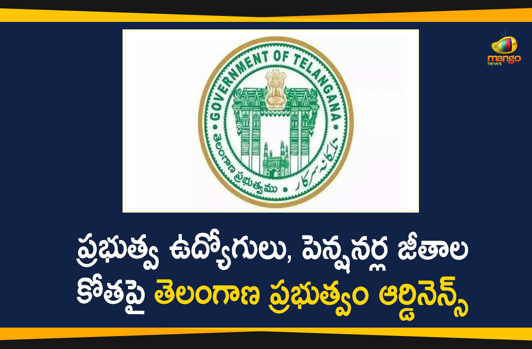 తెలంగాణ రాష్ట్రంలో విపత్తులు లేదా అత్యవసర పరిస్థితి తలెత్తినప్పుడు ప్రభుత్వ ఉద్యోగుల వేతనాలు, పెన్షనర్ల పింఛన్లలో కోత విధించేలా రాష్ట్ర ప్రభుత్వం కొత్తగా ఆర్డినెన్స్ తీసుకొచ్చింది. విపత్తులు, ఏదైనా అత్యవసర పరిస్థితి పరిస్థితి ఏర్పడినప్పుడు ప్రభుత్వ, ప్రభుత్వ రంగ సంస్థలు, విశ్వవిద్యాలయాలు, స్థానిక సంస్థల ఉద్యోగుల వేతనాలుతో పాటుగా పెన్షనర్ల పింఛన్లలో కూడా గరిష్ఠంగా 50శాతం కోత విధించేలా ఆర్డినెన్స్ రూపొందించిన ప్రభుత్వం గెజిట్ నోటిఫికేషన్ జారీ చేసింది. ఇలా కోత విధించిన మొత్తాన్ని ఆర్నెల్ల లోపు ఉద్యోగులు, పెన్షనర్లకు తిరిగి చెల్లించాలని నిర్ణయించారు. మార్చి 24 వ తేదీ నుంచే ఈ ఆర్డినెన్స్ అమల్లోకి వచ్చినట్టుగా గెజిట్ నోటిఫికేషన్ లో ప్రభుత్వం స్పష్టం చేసింది.