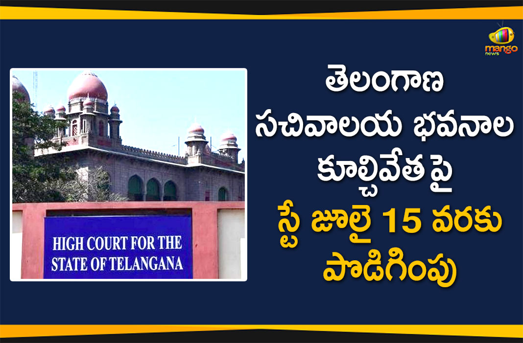తెలంగాణలో సచివాలయ భవనాల కూల్చివేత పక్రియపై మధ్యంతర ఉత్తర్వులు జారీ చేస్తూ జూలై 13, సోమవారం వరకు నిలిపివేయాలని రాష్ట్ర ప్రభుత్వాన్ని హైకోర్టు ఇటీవల ఆదేశించిన సంగతి తెలిసిందే. సచివాలయం కూల్చివేతకు సంబంధించి పి.ఎల్.విశ్వేశ్వరరావు హైకోర్టులో పిటిషన్ దాఖలు చేశారు. ఈ అంశంపై శుక్రవారం విచారణ చేపట్టిన న్యాయస్థానం పూర్తి వివరాలతో కౌంటర్ దాఖలు చేయాలని ప్రభుత్వానికి ఆదేశాలు జారీ చేసింది. ఈ నేపథ్యంలో స్టే గడువు ముగియడంతో తిరిగి ఈ అంశంపై ఈ రోజు హైకోర్టు విచారణ చేపట్టింది. విచారణ అనంతరం భవనాల కూల్చివేతపై స్టే ను జూలై 15 వరకు పొడిగిస్తూ హైకోర్టు ఉత్తర్వులు జారీ చేసింది. అలాగే ప్రభుత్వం కూడా భవనాల కూల్చివేత అనుమతులపై కౌంటర్ పిటిషన్ దాఖలు చేసింది. దీంతో ఈ పిటిషన్లపై తదుపరి విచారణ జూలై 15 న జరగనుంది.