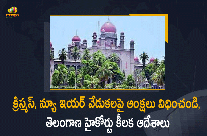 రాష్ట్రంలో ప్రస్తుత కోవిడ్-19 పరిస్థితులపై తెలంగాణ హైకోర్టు గురువారం ఉదయం విచారణ చేపట్టింది. ఈ సందర్భంగా క్రిస్మస్, న్యూఇయర్ వేడుకలు, సంబంధిత సమావేశాలపై ఆంక్షలు విధించాలని రాష్ట్ర ప్రభుత్వానికి కోర్టు ఆదేశాలు ఇచ్చింది. ఓ వైపు ఒమిక్రాన్ వేరియంట్ వ్యాప్తి క్రమంగా పెరుగుతున్న నేపథ్యంలో క్రిస్మస్, న్యూఇయర్ వేడుకల కోసం ప్రజలు గుంపులు, గుంపులుగా గుమిగూడకుండా చర్యలు తీసుకోవాలని, అవసరమైన అన్ని చర్యలు, జాగ్రత్తలు చేపట్టాలని కోర్టు సూచించింది. ఇందుకు సంబంధించిన ఆంక్షలపై రెండు, మూడు రోజుల్లో ఉత్తర్వులు జారీ చేయాలని ప్రభుత్వాన్ని కోర్టు ఆదేశించింది.
