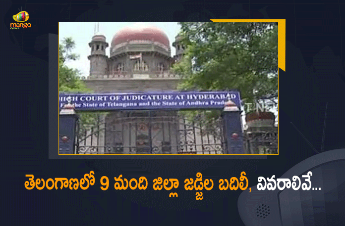 తెలంగాణ రాష్ట్రవ్యాప్తంగా తొమ్మిది మంది జిల్లా జడ్జీలు బదిలీ అయ్యారు. జిల్లా జడ్జీల బదిలీలు, పోస్టింగ్స్ పై హైకోర్టు రిజిస్ట్రార్ (విజిలెన్స్) బుధవారం ఉత్తర్వులు జారీచేశారు.