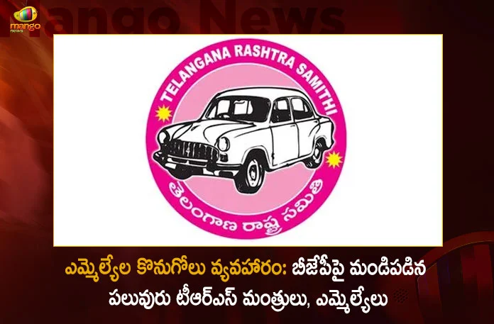 టీఆర్ఎస్ పార్టీకి చెందిన నలుగురు ఎమ్మెల్యేల కొనుగోలు వ్యవహారం వెలుగుచూసిన నేపథ్యంలో అధికార పార్టీ మండిపడింది. దీనిపై టీఆర్ఎస్ పార్టీకి చెందిన పలువురు మంత్రులు, నేతలు స్పందించారు. బీజేపీ నీచ రాజకీయాలకు పాల్పడుతోందని, సంతలో పశువుల్లా ఎమ్మెల్యేలను కొనుగోలు చేయడానికి ప్రయత్నించిందని తీవ్రస్థాయిలో ధ్వజమెత్తారు. మునుగోడులో ఓడిపోతామనే భయంతోనే కొనుగోలు రాజకీయాలకు బీజేపీ తెర తీసిందని మంత్రులు తలసాని శ్రీనివాస్ యాదవ్, మల్లారెడ్డి, శ్రీనివాస్ గౌడ్ తదితరులు విమర్శించారు. తెలంగాణాలో ప్రజల ఆమోదంతో అధికారంలోకి వచ్చిన టీఆర్ఎస్ సర్కారును పడగొట్టాలని కుట్ర చేశారని, దీనిలో భాగంగానే ఒక్కో ఎమ్మెల్యేను రూ.100 కోట్లకు కొనాలని చూశారని టీఆర్ఎస్ ఎమ్మెల్యేలు పలువురు మండిపడ్డారు. టీఆర్ఎస్ పార్టీకి చెందిన ఎమ్మెల్యేలు గువ్వల బాలరాజు, రేగా కాంతారావు, హర్షవర్ధన్ రెడ్డి, రోహిత్ రెడ్డిలకు పెద్ద మొత్తంలో డబ్బు ఆశచూపారని, అయితే తమ పార్టీ ఎమ్మెల్యేలు కోమటిరెడ్డి రాజగోపాల్ రెడ్డి లాగా అమ్ముడుపోరని చెబుతున్నారు. ఇతర రాష్ట్రాల్లో మాదిరే ఇక్కడ కూడా కుట్రలతో ప్రభుత్వాన్ని పడగొడదామని చూశారని, అయితే సీఎం కేసీఆర్ ముందు వారి ఆటలు సాగవని, ఈ చర్యతో బీజేపీ దేశవ్యాప్తంగా నవ్వులపాలైందని టీఆర్ఎస్ నేతలు తెలిపారు.