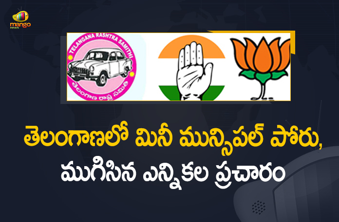 తెలంగాణ రాష్ట్రంలో మినీ మున్సిపల్ పోరు సందడి నెలకుంది. రాష్ట్రంలోని ఖమ్మం, వరంగల్ కార్పొరేషన్లతో పాటుగా సిద్దిపేట, జడ్చర్ల, కొత్తూరు, అచ్చంపేట, నకిరేకల్ మున్సిపాలిటీలకు ఏప్రిల్ 30, శుక్రవారం నాడు పోలింగ్ నిర్వహించనున్నారు. అలాగే గ్రేటర్ హైదరాబాద్ మున్సిపల్ కార్పోరేషన్ (జీహెచ్ఎంసీ)లోని లింగోజిగూడ వార్డు సహా పలు మున్సిపాలిటీల్లో ఖాళీ అయిన వార్డులకు కూడా ఏప్రిల్ 30న ఎన్నికలు జరగనున్నాయి. ఈ నేపథ్యంలో ఈ మున్సిపల్ ఎన్నికల ప్రచారం మంగళవారం సాయంత్రం 5 గంటలకు ముగిసింది. కరోనా వ్యాప్తి నేపథ్యంలో ఈసారి పోలింగ్ కు 72 గంటల ముందే ఎన్నికల ప్రచారాన్ని ముగించాలని రాష్ట్ర ఎన్నికల కమిషన్ ఆదేశాలు ఇచ్చిన నేపథ్యంలో మంగళవారంతోనే ఎన్నికల ప్రచారానికి తెరపడింది.