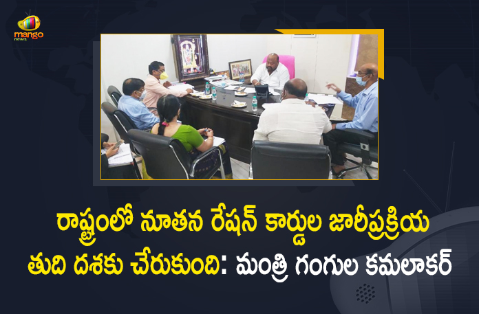 ముఖ్యమంత్రి కె.చంద్రశేఖర్ రావు ఆదేశాలకు అనుగుణంగా నూతన రేషన్ కార్డుల జారీ ప్రక్రియ తుది దశకు చేరుకుంది. ఇప్పటికే ఎన్ఐసి, టిఎస్ టిఎస్ వెరిఫికేషన్ పూర్తయి జిల్లాల వారీగా జరుగుతున్న ధ్రువీకరణ ప్రక్రియ చాలా వేగంగా జరుగుతుంది. ఈ అంశంపై రాష్ట్ర బిసి సంక్షేమ, పౌరసరఫరాల శాఖ మంత్రి గంగుల కమలాకర్ హైదరాబాద్ లోని తన కార్యాలయంలో బుధవారం నాడు ఉన్నతస్థాయి సమీక్ష నిర్వహించారు. రాష్ట్ర వ్యాప్తంగా 4,15,901 అప్లికేషన్ల విచారణ తుదిదశకు చేరుకుందని, అత్యంత త్వరలోనే లబ్దీదారులను గుర్తించి వీలైనంత త్వరగా వారికి కార్డులతో పాటు రేషన్ ఒకేసారి అందించే విదంగా చర్యలు తీసుకోవాలని మంత్రి పౌరసరఫరాల శాఖ అధికారులను ఆదేశించారు.