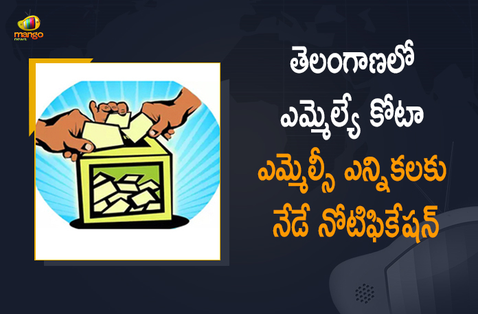 తెలంగాణ రాష్ట్రంలో ఎమ్మెల్సీ ఎన్నికలకు సంబంధించి కేంద్ర ఎన్నికల సంఘం (ఈసీ) ఇటీవలే షెడ్యూల్ విడుదల చేసిన విషయం తెలిసిందే. ఎమ్మెల్యే కోటాకు సంబంధించిన తెలంగాణలో ఆరు ఎమ్మెల్సీ స్థానాలకు ఎన్నికలు జరగనున్నాయి. ఈ నేపథ్యంలో ఎమ్మెల్యే కోటా ఎమ్మెల్సీ ఎన్నికలను నేడు (నవంబర్ 9, మంగళవారం) నోటిఫికేషన్ విడుదల కానుంది. అభ్యర్థులు నామినేషన్స్ దాఖలుకు ఆఖరితేదీ నవంబర్ 16గా నిర్ణయించారు. నామినేషన్ల పరిశీలన నవంబర్ 17న చేపట్టనుండగా, ఉపసంహరణకు నవంబర్ 22 వరకు అవకాశమిచ్చారు. ఇక నవంబర్ 29 తేదీన ఉదయం 09:00 నుంచి సాయంత్రం 04:00 గంటల వరకు పోలింగ్ నిర్వహించి, అదేరోజు సాయంత్రం 5 గంటల నుంచి ఓట్ల లెక్కింపు ప్రక్రియ చేపట్టనున్నారు.