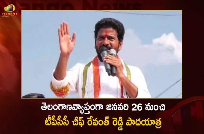 తెలంగాణ పీసీసీ అధ్యక్షుడు రేవంత్ రెడ్డి కీలక నిర్ణయం తీసుకున్నారు. రాష్ట్రంలో మార్పు తీసుకురావడానికి, రాహుల్ గాంధీ చేపడుతున్న ‘భారత్ జోడో యాత్ర’ లక్ష్యాలను ప్రజల్లోకి తీసుకెళ్లడానికి 2023, జనవరి 26వ తేదీ నుంచి తెలంగాణ రాష్ట్రవ్యాప్తంగా పాదయాత్ర చేయనున్నట్టు రేవంత్ రెడ్డి తెలిపారు. ఈ పాదయాత్రకు చెందిన పూర్తి రూట్ మ్యాప్, ఎక్కడ ప్రారంభించి, ఎక్కడ ముగించనున్నారు?, ఎన్ని నెలల పాటుగా రేవంత్ రెడ్డి పాదయాత్ర సాగనుంది? అనే విషయాలపై త్వరలోనే ప్రకటన చేయనున్నట్టు తెలుస్తుంది. కాగా ‘‘యాత్ర’’ పేరుతో పాదయాత్ర చేస్తూ జనంలోకి వెళ్లాలని రేవంత్ నిర్ణయించుకున్నట్టు సమాచారం.