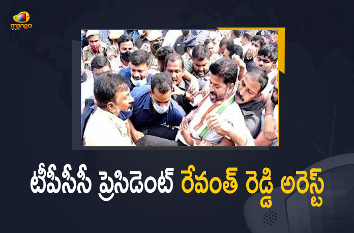 తెలంగాణ పీసీసీ ప్రెసిడెంట్ రేవంత్ రెడ్డి అరెస్ట్ అయ్యారు. ఈ రోజు ముఖ్యమంత్రి కేసీఆర్ జన్మదినం సందర్భంగా రాష్ట్రంలో నిరసన కార్యక్రమాలకు కాంగ్రెస్ పార్టీ పిలుపునిచ్చింది. ఈ క్రమంలో.. పోలీసులు రేవంత్ను జూబ్లీహిల్స్లోని ఆయన నివాసం వద్ద అదుపులోకి తీసుకున్నారు. అయితే, ఈ సందర్భంగా రేవంత్ రెడ్డికి, పోలీసులకు మధ్య వాగ్వాదం చోటు చేసుకుంది. కాగా, రాష్ట్రంలో ఓ వైపు నిరుద్యోగులు ఆత్మహత్యలు చేసుకుంటుంటే సీఎం కేసీఆర్ జన్మదిన వేడుకలను ఘనంగా మూడు రోజుల పాటు జరపడాన్ని నిరసిస్తూ ఈరోజు రాష్ట్ర వ్యాప్తంగా ఆందోళనలకు పిలుపునిచ్చారు రేవంత్ రెడ్డి.
