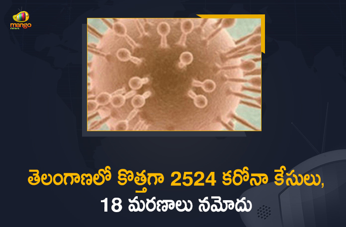 తెలంగాణలో 24 గంటల్లో 2524 కరోనా కేసులు, 3464 రికవరీలు నమోదు