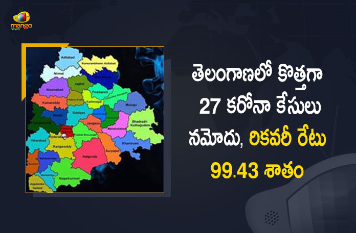 తెలంగాణ రాష్ట్రంలో రోజువారీ కరోనా పాజిటివ్ కేసుల నమోదు తగ్గుముఖం పట్టింది. కొత్తగా 27 మందికి కరోనా పాజిటివ్ గా నిర్ధారణ కావడంతో మే 23, సోమవారం సాయంత్రం 5:30 గంటల నాటికీ మొత్తం కరోనా కేసుల సంఖ్య 7,92,898 కి చేరినట్టు రాష్ట్ర వైద్య ఆరోగ్యశాఖ బులెటిన్ విడుదల చేసింది. అలాగే కరోనా నుంచి మరో 52 మంది కోలుకోవడంతో ఇప్పటివరకు రికవరీ అయినవారి సంఖ్య 7,88,415 కి చేరింది.