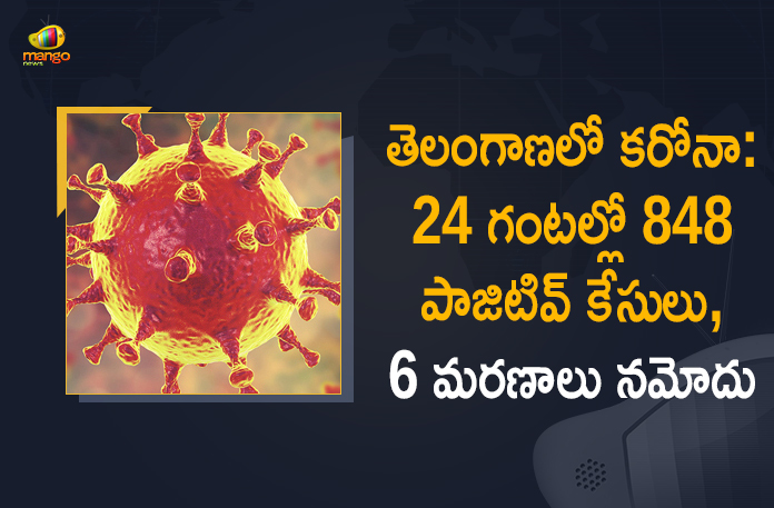 తెలంగాణ రాష్ట్రంలో కరోనా మహమ్మారి ప్రభావం తగ్గుముఖం పట్టింది. కొత్తగా 848 కేసులు నమోదవడంతో జూలై 3, శనివారం సాయంత్రం 5:30 గంటల వరకు మొత్తం పాజిటివ్ కేసుల సంఖ్య 6,26,085 కి చేరినట్టు రాష్ట్ర వైద్య ఆరోగ్యశాఖ బులెటిన్ విడుదల చేసింది. కరోనా వలన మరో 6 మంది మరణించడంతో, రాష్ట్రంలో మొత్తం మరణాల సంఖ్య 3684 కి పెరిగింది.