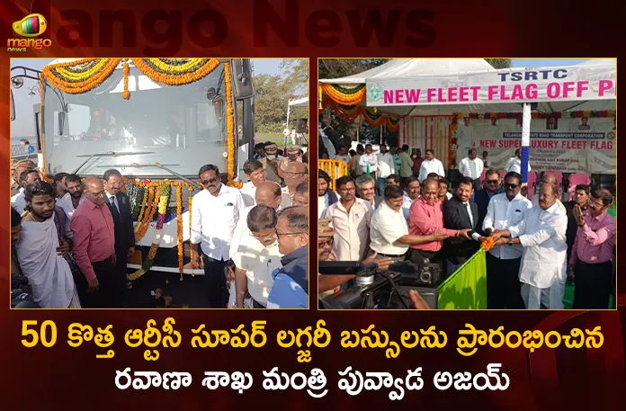 తెలంగాణ రాష్ట్ర రోడ్డు రవాణా సంస్థ (టీఎస్ఆర్టీసీ) అత్యాధునిక హంగులతో సరికొత్త ఆధునిక సదుపాయాల గల కొత్త సూపర్ లగ్జరీ బస్సులను అందుబాటులోకి తెచ్చింది. శనివారం మధ్యాహ్నం 50 కొత్త టీఎస్ఆర్టీసీ సూపర్ లగ్జరీ బస్సులను తెలంగాణ రాష్ట్ర రవాణా శాఖ మంత్రి పువ్వాడ అజయ్ కుమార్ ప్రారంభించారు. హైదరాబాద్ లోని ట్యాంక్ బండ్ వద్ద జరిగిన కార్యక్రమంలో తొలివిడతలో భాగంగా 50 సూపర్ లగ్జరీ బస్సులను టీఎస్ఆర్టీసీ చైర్మన్ బాజిరెడ్డి గోవర్ధన్, టీఎస్ఆర్టీసీ ఎండీ సజ్జనార్ తో కలిసి మంత్రి పువ్వాడ అజయ్ జెండా ఊపి ప్రారంభించారు. తెలంగాణ ముఖ్యమంత్రి కె.చంద్రశేఖర్ రావు సూచనల మేరకు రూ.392 కోట్లతో అధునాతనమైన 1016 కొత్త బస్సులను టీఎస్ఆర్టీసీ కొనుగోలు చేస్తుందన్నారు. తొలి విడతగా 630 సూపర్ లగ్జరీ బస్సులు, 130 డీలక్స్, 16 స్లీపర్ బస్సులు అందుబాటులోకి రానుండగా, పూర్తి స్ధాయిలో 2023 మార్చి నాటికి అందుబాటులోకి రానున్నాయని మంత్రి తెలిపారు.