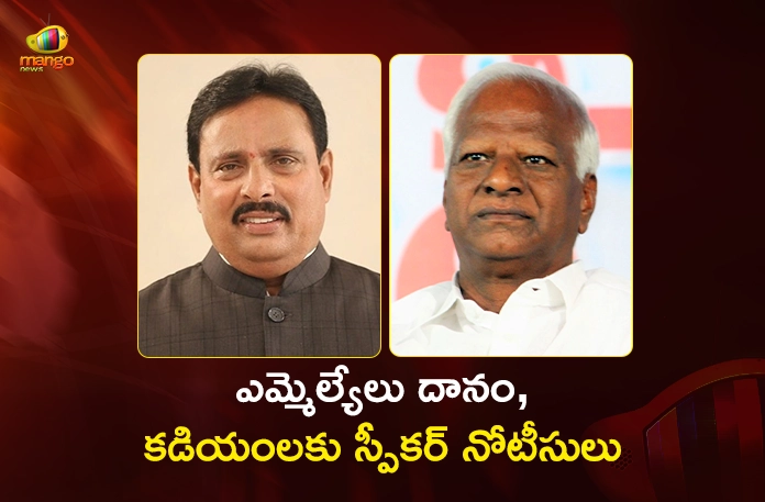 బీఆర్ఎస్ పార్టీ నుంచి గెలిచి కాంగ్రెస్ పార్టీలో చేరినట్టు ఆరోపణలు ఎదుర్కొంటున్న ఎమ్మెల్యేల అనర్హత పిటిషన్లపై వివరణ ఇవ్వాలని కోరుతూ స్పీకర్ గడ్డం ప్రసాద్కుమార్ గురువారం మరోసారి నోటీసులు జారీ చేశారు. స్టేషన్ఘన్పూర్ ఎమ్మెల్యే కడియం శ్రీహరి మరియు ఖైరతాబాద్ ఎమ్మెల్యే దానం నాగేందర్కు ఈ నోటీసులు అందాయి.