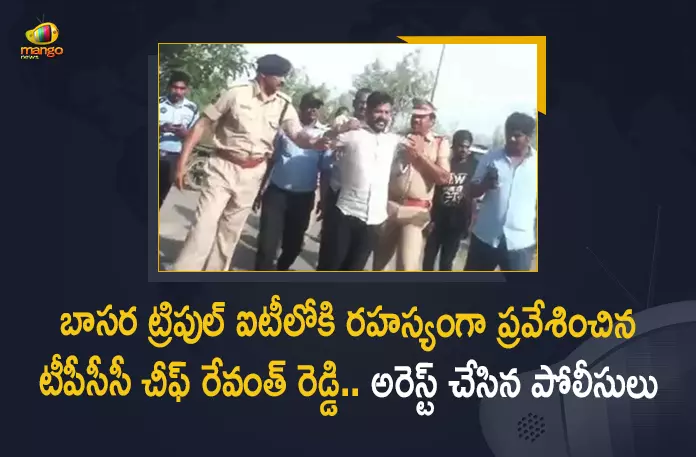 పోలీసుల కళ్లుగప్పి రహస్యంగా బాసర ట్రిపుల్‌ ఐటీలోకి ప్రవేశించిన టీపీసీసీ చీఫ్‌ రేవంత్‌ రెడ్డి.. అరెస్ట్ చేసిన పోలీసులు