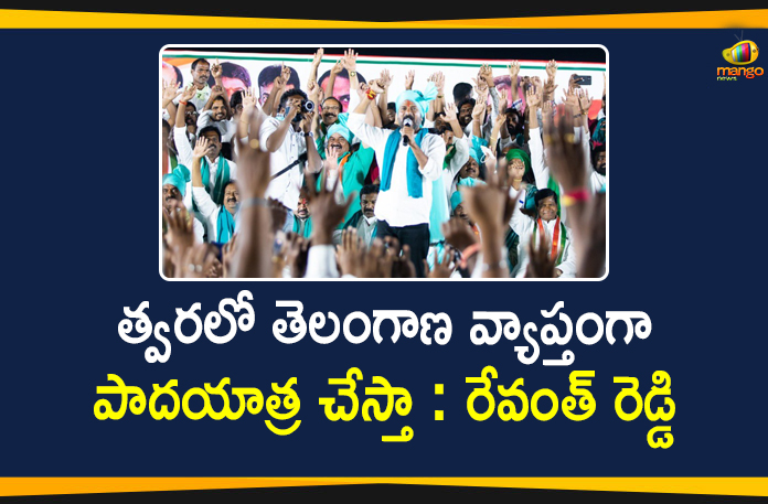 టీపీసీసీ వర్కింగ్ ప్రెసిడెంట్, మల్కాజ్ గిరి ఎంపీ రేవంత్ రెడ్డి నాగర్కర్నూలు జిల్లా అచ్చంపేట నుంచి రంగారెడ్డి రావిరాల వరకు చేపట్టిన ‘రాజీవ్ రైతు భరోసా పాదయాత్ర’ మంగళవారంతో ముగిసింది. మొత్తం 149 కి.మీ మేర రేవంత్రెడ్డి పాదయాత్ర చేశారు. పాదయాత్ర ముగింపు సందర్భంగా రావిరాలలో “రాజీవ్ రైతు రణభేరి” సభ నిర్వహించారు. ఈ సభలో ప్రసంగిస్తూ రేవంత్ రెడ్డి కీలక ప్రకటన చేశారు. త్వరలో తెలంగాణ రాష్ట్రవ్యాప్తంగా పాదయాత్ర చేస్తానని ప్రకటించారు. తన పాదయాత్రతో ఉప్పెన సృష్టిస్తానని పేర్కొన్నారు. ఈసారి పాదయాత్ర కోసం ఏఐసీసీ అనుమతి తీసుకుంటానని, రోడ్మ్యాప్ వేసి వివరాలు వెల్లడిస్తానని చెప్పారు. నూతన వ్యవసాయ చట్టాలను కేంద్ర ప్రభుత్వం రద్దు చేయాలని డిమాండ్ చేశారు. అలాగే వ్యవసాయ చట్టాలకు వ్యతిరేకంగా తెలంగాణ అసెంబ్లీలో తీర్మానం చేయాలని రేవంత్ రెడ్డి డిమాండ్ చేశారు. రాజీవ్ రైతు రణభేరి సభలో సీతక్క, మల్లురవి, చిన్నా రెడ్డి, కొండా సురేఖ, షబ్బీర్ అలీ, పొన్నం ప్రభాకర్ సహా పలువురు కాంగ్రెస్ నాయకులు పాల్గొన్నారు.