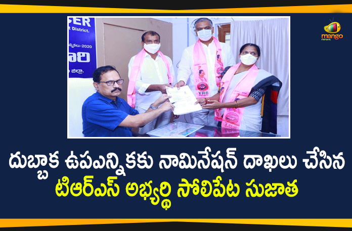 మెదక్ జిల్లాలోని దుబ్బాక అసెంబ్లీ నియోజకవర్గ ఉప ఎన్నిక నవంబర్ 3 న జరగనున్న సంగతి తెలిసిందే. ఈ ఉపఎన్నికకు నామినేషన్ పక్రియ మొదలుకాగా, ఆఖరి తేదీ అక్టోబర్ 16 గా నిర్ణయించారు. ఈ నేపథ్యంలో ప్రధాన రాజకీయ పార్టీల అభ్యర్థులు నామినేషన్లు దాఖలు చేస్తున్నారు. టిఆర్ఎస్ అభ్యర్థిగా పోటీచేస్తున్న దివంగత మాజీ ఎమ్మెల్యే సోలిపేట రామలింగారెడ్డి సతీమణి సోలిపేట సుజాత బుధవారం నాడు నామినేషన్ దాఖలు చేశారు. సోలిపేట సుజాత నామినేషన్ కార్యక్రమంలో మంత్రి హరీశ్రావు, మెదక్ ఎంపీ కొత్త ప్రభాకర్ రెడ్డి కూడా పాల్గొన్నారు. అక్టోబర్ 17 న నామినేషన్ల పరిశీలన చేయనున్నారు. అలాగే నామినేషన్ల ఉపసంహరణకు గడువును అక్టోబర్ 19 గా నిర్ణయించారు. ఇక దుబ్బాక ఉప ఎన్నికకు కాంగ్రెస్ అభ్యర్థిగా చెరుకు శ్రీనివాస్ రెడ్డి, బీజేపీ అభ్యర్థిగా ఎం.రఘునందన్ రావు బరిలో నిలిచిన సంగతి తెలిసిందే.