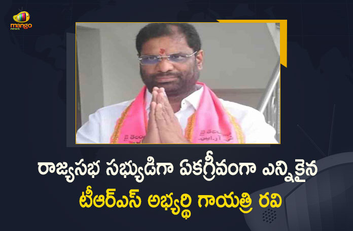 తెలంగాణ రాష్ట్రంలో ఖాళీ అయిన రాజ్యసభ స్థానం ఉప ఎన్నికకు తెలంగాణ రాష్ట్ర సమితి (టీఆర్ఎస్) పార్టీ అభ్యర్థిగా పార్టీ నేత, ప్రముఖ వ్యాపారవేత్త వద్దిరాజు రవిచంద్ర (గాయత్రి రవి) నామినేషన్ దాఖలు చేసిన సంగతి తెలిసిందే. ఈ ఉప ఎన్నికలో రాజ్యసభ సభ్యుడిగా గాయత్రి రవి ఏకగ్రీవంగా ఎన్నికయ్యారు. ఈ మేరకు ఎన్నికల రిటర్నింగ్ అధికారి సోమవారం గాయత్రి రవికి ఎన్నిక ధ్రువీకరణ పత్రాన్ని అందజేశారు. ముందుగా మే 20న నామినేషన్ల పరిశీలన అనంతరం ఈ స్థానానికి సమాజ్వాదీ పార్టీ అభ్యర్థి జాజుల భాస్కర్, ఇండిపెండెంట్ అభ్యర్థి భోజ్రాజ్ కొయాల్కర్ దాఖలు చేసిన నామినేషనన్స్ సరిగ్గా లేని కారణంగా తిరస్కరించినట్టు చీఫ్ ఎలెక్టోరల్ ఆఫీసర్ ప్రకటించారు. ఇక ఈ ఉపఎన్నికకు నామినేషన్ల ఉపసంహరణ గడువు నేటితో (మే 23, సోమవారం) ముగియడంతో, పోటీలో ఎవరూ లేకపోవడంతో గాయత్రి రవి ఏకగ్రీవంగా ఎన్నికైనట్టు ప్రకటించారు.