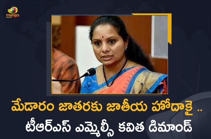 ఈ మధ్యే కొత్తగా టీఆర్ఎస్ ఎమ్మెల్సీగా ప్రమాణస్వీకారం చేసిన ముఖ్యమంత్రి తనయ కల్వకుంట్ల కవిత.. బీజేపీ రాష్ట్ర అధ్యక్షుడు బండి సంజయ్కి ఒక డిమాండ్ వినిపించారు. తెలంగాణ రాష్ట్ర ప్రజలు ఘనంగా జరుపుకునే మేడారం మహా జాతరకు జాతీయ హోదా తేవాలని కరీంనగర్ ఎంపీ బండి సంజయ్ని ఎమ్మెల్సీ కవిత డిమాండ్ చేశారు. తెలంగాణ రాష్ట్రం ఏర్పడ్డాక నాలుగుసార్లు జరిగిన మేడారం జాతర నిర్వహణకు సీఎం కేసీఆర్ రూ. 332.71 కోట్లు నిధులను విడుదల చేశారని కవిత చెప్పారు.