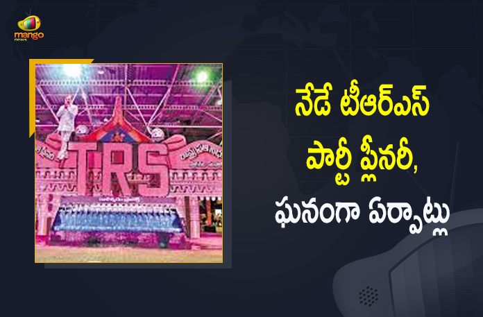 తెలంగాణ రాష్ట్ర సమితి (టీఆర్ఎస్) పార్టీ ప్లీనరికి అన్ని ఏర్పాట్లు పూర్తయ్యాయి. టీఆర్ఎస్ పార్టీ స్థాపించి రెండు దశాబ్దాలు పూర్తయిన నేపథ్యంలో జరుగుతున్న ఈ ప్లీనరీని అత్యంత ఘనంగా నిర్వహిస్తున్నారు. సోమవారం నాడు హైదరాబాద్ లోని మాదాపూర్ హెటెక్స్లో జరగనున్న ఈ ప్లీనరీకి రాష్ట్రవ్యాప్తంగా అన్ని నియోజకవర్గాల నుంచి 6 వేల మంది పార్టీ ప్రతినిధులను ఆహ్వానించారు. ఈ ప్లీనరీలో భాగంగా టీఆర్ఎస్ పార్టీ అధ్యక్షునిగా సీఎం కె.చంద్రశేఖర్ రావును మరోసారి ఏకగ్రీవంగా ఎన్నుకోవడంతో పాటుగా అనేక రాష్ట్ర, జాతీయ అంశాలపై తీర్మానాలు చేయనున్నారు. అనంతరం పార్టీ సంస్థాగత నిర్మాణం, భవిష్యత్తు ప్రణాళికలపై నాయకులు, పార్టీ శ్రేణులకు సీఎం కేసీఆర్ దిశానిర్దేశం చేయనున్నారు.
