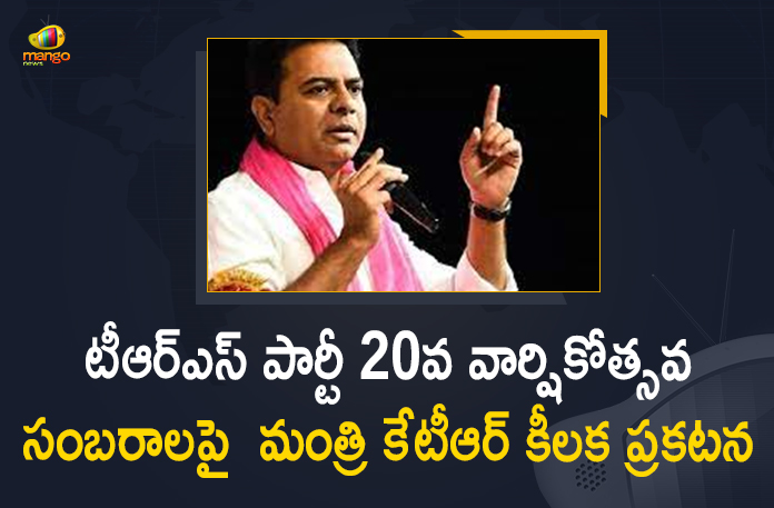 తెలంగాణ రాష్ట్ర సమితి పార్టీ 20వ వార్షికోత్సవం (ఏప్రిల్ 27) సందర్భంగా పార్టీ వర్కింగ్ ప్రెసిడెంట్, మంత్రి కేటీఆర్ కీలక ప్రకటన చేశారు. ప్రస్తుత కరోనా పరిస్థితుల్లో సంబరాల విషయంలో పార్టీ శ్రేణులకు సందేశం ఇచ్చారు. తెలంగాణను సాధించి ఆత్మగౌరవాన్ని చాటిన గులాబీ జెండాను ప్రతి జిల్లాలో, మండలాల్లో, పట్టణాల్లో, గ్రామాల్లో అన్ని కోవిడ్ నిబంధనలు పాటిస్తూ ప్రజాప్రతినిధులు, ముఖ్యనాయకులు, కార్యకర్తలు జెండా ఆవిష్కరణ చేపట్టాలని గులాబీ శ్రేణులకు మంత్రి కేటీఆర్ పిలుపునిచ్చారు. కరోనా నేపథ్యంలో పార్టీ వార్షికోత్సవ వేడుకలు ఘనంగా జరుపలేకపోతున్నామని తెలిపారు. సీఎం కేసీఆర్ నాయకత్వంలో తెలంగాణ సాధించి, తెలంగాణను అభివృద్ధి పధంలో ముందుకు తీసుకెళ్తున్న టీఆర్ఎస్ పార్టీ గులాబీ జెండాను ప్రతి ఇంటిపై ఎగరవేద్దాం. మన ఆత్మగౌరవాన్ని మరో మారు చాటుదామని మంత్రి కేటీఆర్ పేర్కొన్నారు. తెలంగాణ ప్రజల ఆకాంక్షలు నెరవేర్చడమే లక్ష్యంగా ఏప్రిల్ 27, 2001 న సీఎం కేసీఆర్ నేతృత్వంలో టీఆర్ఎస్ పార్టీ ఆవిర్భవించిన సంగతి తెలిసిందే.