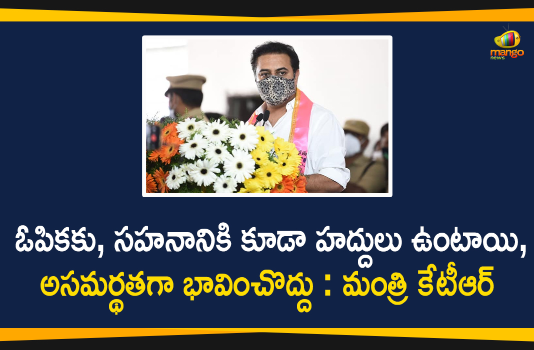 గత ఏడేళ్లలో టీఆర్ఎస్ పార్టీ ఎన్నో సంచలన విజయాలు నమోదు చేసిందని చెప్పారు. అయితే ఇటీవల కొందరు ఒకట్రెండు గెలిచే ఎగిరిపడుతున్నారని, ఇష్టమొచ్చినట్టు మాట్లాడుతున్నారని విమర్శించారు. తమ ఓపికకు, సహనానికి కూడా హద్దులు ఉంటాయని, సందర్భం వచ్చిన నాడు తగిన విధంగా బుద్ధిచెబుతామని హెచ్చరించారు. సహనాన్ని అసమర్థతగా భావించొద్దన్నారు. ఎన్నికలు గెలవచ్చు, ఓడిపోవచ్చు కానీ ఒక లక్ష్యాన్ని సాధించేదాకా ఎన్ని అవాంతరాలు వచ్చినా జెండా దించకుండా కొట్లాడింది ఒక్క టీఆర్ఎస్ పార్టీ మాత్రమేనని అన్నారు. సీఎం కేసీఆర్ నాయకత్వంలో తెలంగాణ రాష్ట్రం అభివృద్ధి పథంలో దూసుకెళ్తుందని చెప్పారు. 24 గంటల ఉచిత విద్యుత్, రైతుబంధు, రైతుబీమా, రుణమాఫీ, కల్యాణలక్ష్మి ఇలా ఎన్నో సంక్షేమ పథకాల ద్వారా ప్రజలకు లబ్ధి చేకూర్చుతున్నామన్నారు. పార్టీ సభ్యత్వ నమోదు ఫిబ్రవరి నెలాఖరు లోపుగా పూర్తి చేయాలని, ఈ విషయంలో రాష్ట్రంలో ముందుండేలా చూడాలని స్థానిక పార్టీ శ్రేణులకు మంత్రి కేటీఆర్ పిలుపునిచ్చారు.