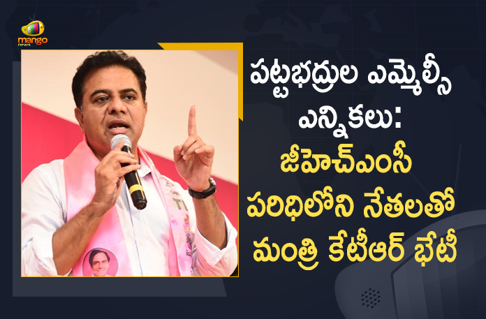 ఈ సమావేశానికి జీహెచ్ఎంసీ పరిధిలోని మంత్రులు, ఎమ్మెల్యేలు, ఎమ్మెల్సీలు, మేయర్, డిప్యూటీ మేయర్, వివిధ కార్పొరేషన్ల చైర్మన్లు, ఇతర ప్రజాప్రతినిధులు హాజరయ్యారు. అలాగే బుధవారం సాయంత్రం 4 గంటలకు ఉమ్మడి మహబూబ్నగర్ జిల్లా ప్రజాప్రతినిధులు, ముఖ్య నేతలతో కూడా మంత్రి కేటీఆర్ భేటీ కానున్నారు. ఎన్నికల్లో పార్టీ అభ్యర్థి సురభి వాణీదేవి గెలుపుకోసం అనుసరించాల్సిన వ్యూహంపై పార్టీ నాయకులకు మంత్రి కేటీఆర్ దిశానిర్దేశం చేయనున్నారు.