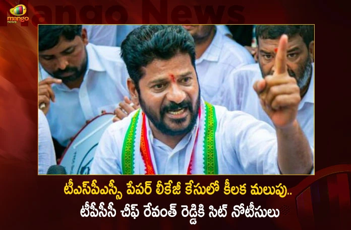 తెలంగాణ పబ్లిక్ సర్వీస్ కమిషన్ (టీఎస్పీఎస్సీ) పేపర్ లీకేజీ కేసులో కీలక పరిణామం చోటుచేసుకుంది. ఈ కేసును దర్యాప్తు చేసేందుకు తెలంగాణ ప్రభుత్వం ఏర్పాటు చేసిన స్పెషల్ ఇన్వెస్టిగేషన్ టీమ్ (సిట్) టీపీసీసీ అధ్యక్షుడు ఎ. రేవంత్ రెడ్డికి నోటీసులు జారీ చేసింది. టీఎస్పీఎస్సీ పరీక్షా పేపర్ల లీకేజీ వ్యవహారంలో రేవంత్ రెడ్డి ఆరోపణలు చేసినందున, దానికి సంబంధించిన ఆధారాలు సమర్పించాలని ఆదేశించింది. ఏఆర్ శ్రీనివాస్ నేతృత్వంలోని సిట్ బృందం ఈ మేరకు రేవంత్ రెడ్డికి నోటీసులు ఇచ్చింది. కాగా ఈ వ్యవహారంలో మంత్రి కేటీఆర్ పీఏ తిరుపతి పాత్ర ఉందని, ఆయన సొంత మండలంలో దాదాపు వంద మందికి ర్యాంకులు వచ్చాయంటూ రేవంత్ రెడ్డి ఆరోపణ చేశారు. దీంతో ఆయన వద్ద ఉన్న సమాచారాన్ని తమకు అందజేయాల్సిందిగా సిట్ కోరింది. అయితే సిట్ నోటీసులపై రేవంత్ రెడ్డి స్పందించారు. సిట్ జారీ చేసిన నోటీసులు ఇంకా తనకు అందలేదని, అలాగే ఆ నోటీసుల్లో ఏముందో తనకు తెలియదని, నోటీసులు అందిన తర్వాత తాను స్పందిస్తానని రేవంత్ రెడ్డి తెలిపారు.