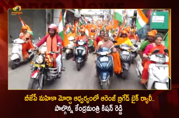 సెప్టెంబర్ 17ను తెలంగాణ విమోచన దినోత్సవంగా పేర్కొంటూ బీజేపీ నేతృత్వంలోని కేంద్రం ఈ ఏడాది అధికారికంగా కార్యక్రమం నిర్వహించనుడటం తెలిసిందే. ఈ వేడుకలలో భాగంగా భారతీయ జనతా పార్టీ (బిజెపి) మహిళా మోర్చా విభాగం ఆధ్వర్యంలో హైదరాబాద్లో బుధవారం ఆరెంజ్ బ్రిగేడ్ బైక్ ర్యాలీ చేపట్టారు. చార్మినార్లోని భాగ్యలక్ష్మి ఆలయం నుండి పరేడ్ గ్రౌండ్ వరకు సాగిన ఈ ర్యాలీలో ముఖ్య అతిథిగా కేంద్రమంత్రి కిషన్ రెడ్డి పాల్గొన్నారు. ముందుగా భాగ్యలక్ష్మీ ఆలయంలో కిషన్ రెడ్డి ప్రత్యేక పూజలు చేసి ర్యాలీ ప్రారంభించారు. ఇక కార్యక్రమంలో భాగంగా ఆయన ర్యాలీలో బైకును ముందు నడుపుతూ బీజేపీ శ్రేణులను ఉత్సాహపరిచారు. ఇక భారతీయ జనతా పార్టీ మహిళా విభాగానికి చెందిన కొన్ని వందల మంది సభ్యులు ఈ బైక్ ర్యాలీలో పాల్గొన్నారు.